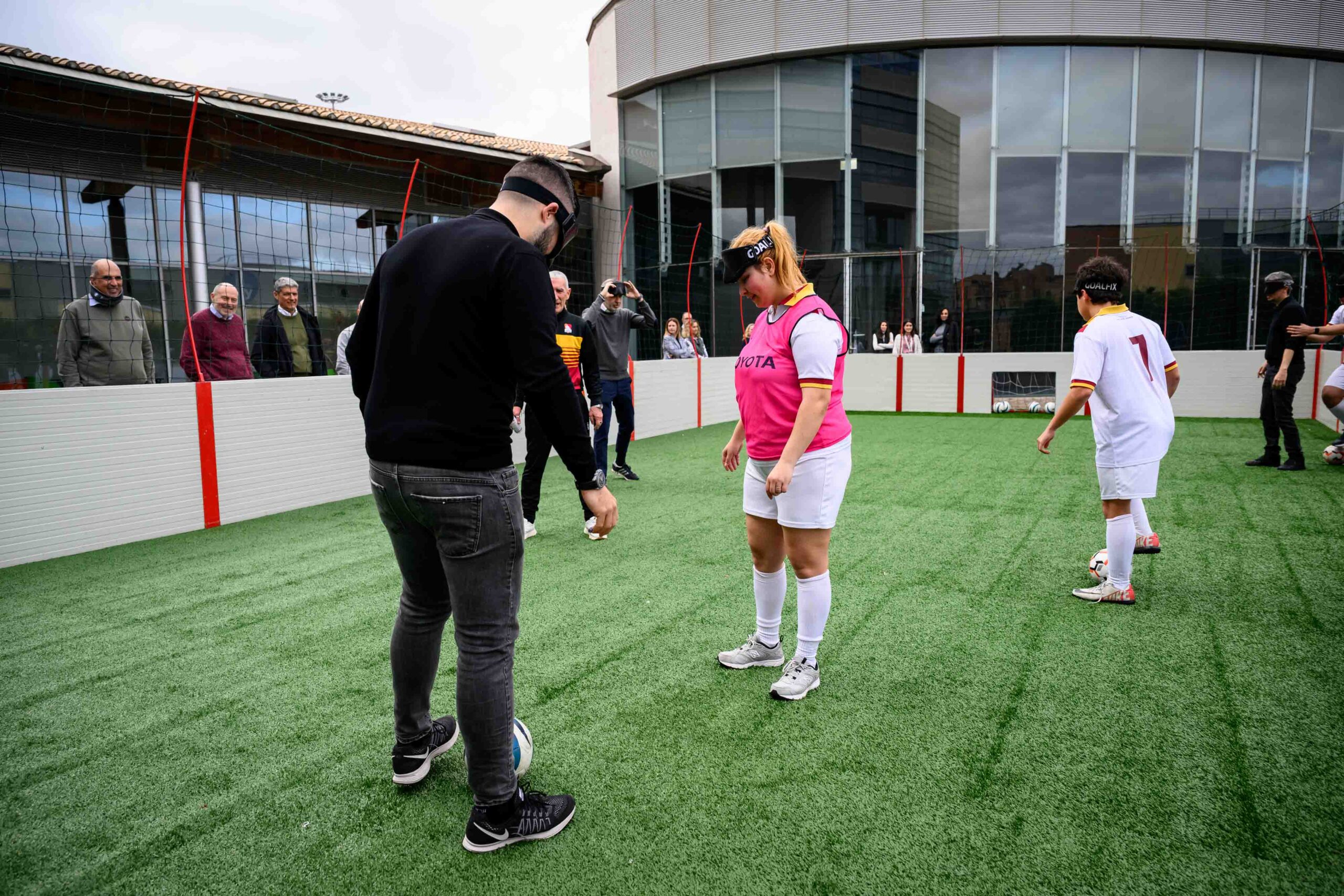 Dopo una prima sessione formativa in aula e l’allenamento dimostrativo degli atleti di calcio a 5 della Roma Blind Football guidato dal tecnico Sauro Cimarelli con l’uso del pallone sonoro, i partecipanti hanno potuto sperimentare personalmente il calcio per non vedenti indossando speciali mascherine per simulare la cecità. Un’esperienza sensoriale inedita e completamente diversa dal consueto per comprendere meglio il valore dell’inclusività di questo sport e del gioco di squadra.
