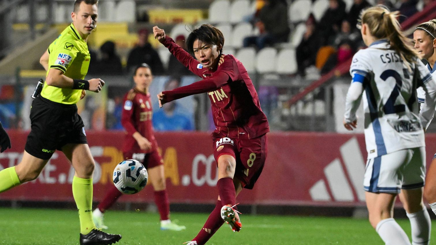 La Roma sarà impegna a Seregno contro il Como per la settima giornata del campionato di Serie A femmile. Sarà un big match ‘inedito’ quello in programma oggi, domenica 23 novembre, alle ore 12.30 tra lariane e capitoline. Tre vittorie di fila (Genoa, Ternana Women e Milan) hanno infatti lanciato la squadra di Sottili al secondo posto, trascinata dai gol di Nadine Nischler; a Seregno arriva una Roma reduce dal pareggio in Champions League sul campo del Leuven, che ha ridotto sensibilmente le possibilità di qualificazione ai playoff della squadra di Rossettini, comunque sempre capolista in Serie A Women.