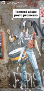Sul suo profilo Instagram, è stato lo stesso Drugi ha raccontare quanto accaduto ed ha lanciato un messaggio a chi ha voluto distruggere un simbolo giallorosso: diffondendo un messaggio: “Le mie opere di solito non durano nemmeno 24 ore attaccate al muro: vengono imbrattate, cancellate, rovinate. E ad essere sincero non m’interessa quasi mai, fa parte del gioco… Poco fa, però, mi hanno mandato questa foto e qui non si parla di rovinare un semplice pezzo di carta. Tornerà al suo posto, promesso”.