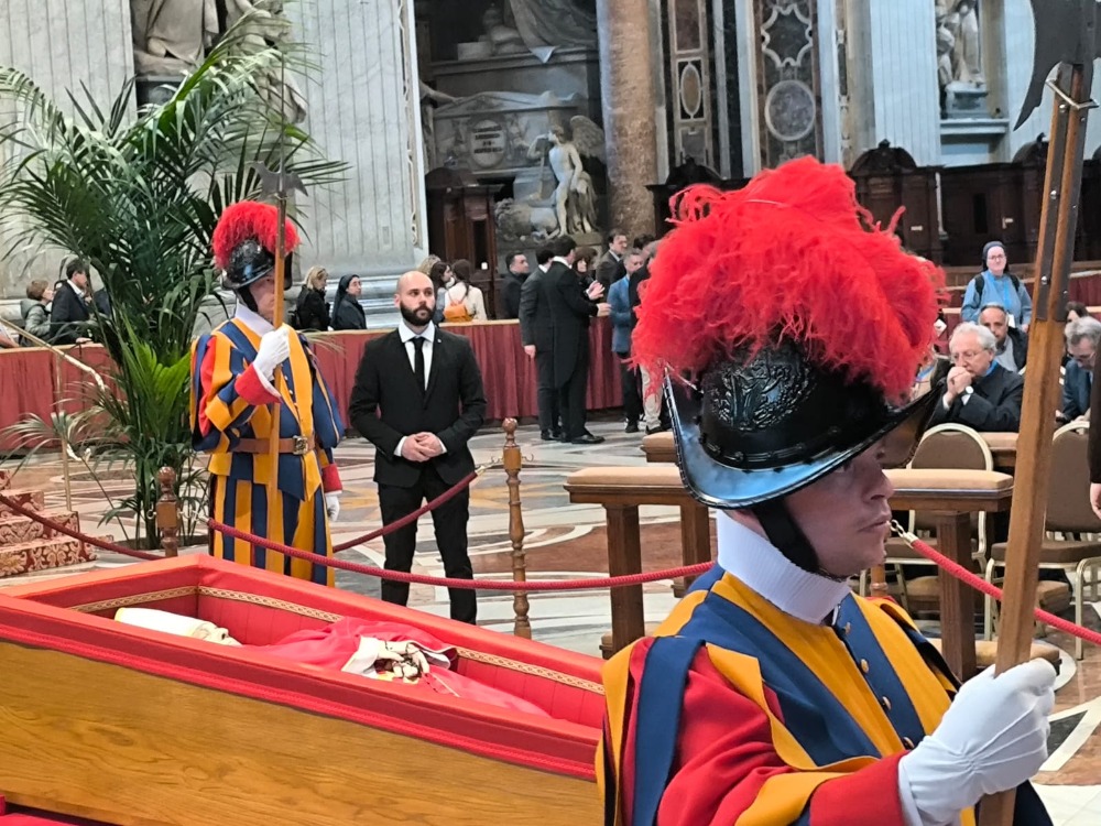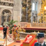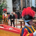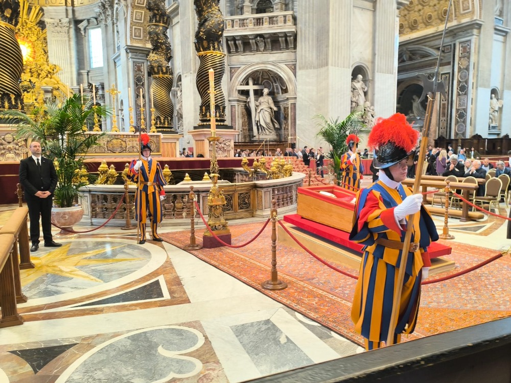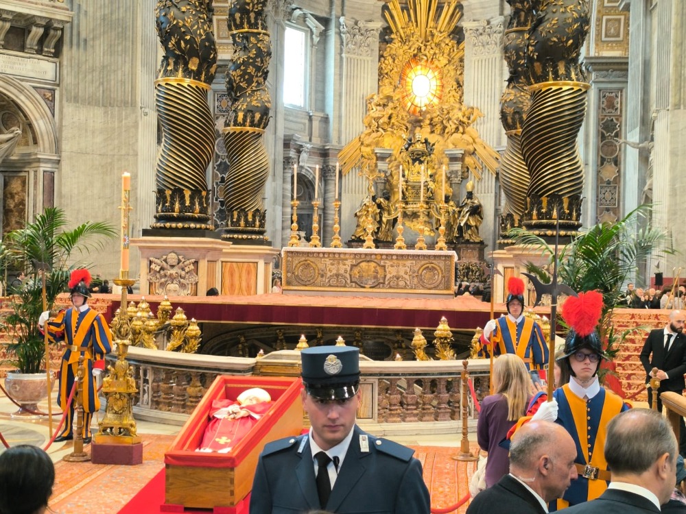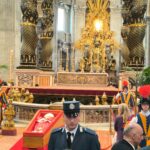 La salma di Papa Francesco morto lunedì a 88 anni, è stata traslata questa mattina da Casa Santa Marta nella basilica di San Pietro per l’omaggio dei fedeli. Tre giorni di preghiere, con orari di apertura straordinari, per consentire, a tutti coloro che vorranno, di portare l’ultimo saluto al Pontefice argentino. Cinque ore di attesa per arrivare a dare l’ultimo saluto e per questo motivo il Vaticano fa sapere che sta valutando di tenere aperta la Basilica oltre la mezzanotte. Sabato mattina alle 10 saranno celebrati i funerali, alla presenza dei grand della Terra.
