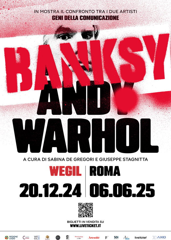 Le opere esposte sono oltre 100, provenienti da famose collezioni private di tutto il mondo e da importanti gallerie d’arte. Dalla Kate Moss sensuale di Banksy alla posa della Marylin realizzata da Warhol dopo la morte dell’attrice nel 1962, al significativo ritratto della Regina Elisabetta, ritratta da Warhol con il diadema reale, e a quella di Banksy con le sembianze di una scimmia (Monkey Queen). E poi i famosi ritratti di Mao, Lenin e Kennedy di Warhol e la Regina Vittoria di Banksy. Al WeGil due artisti geniali, capaci di creare un cocktail potente di celebrità, satira e voyerismo e che hanno saputo trasformare la loro arte in un evento straordinario.