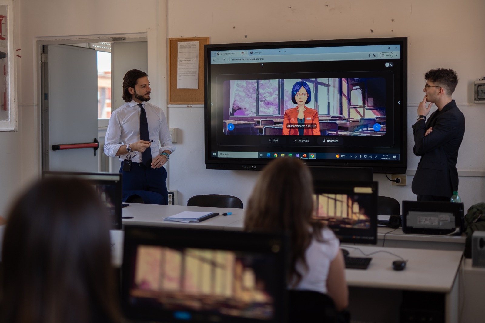 Attraverso un sistema di chatbot vocale e visuale basato su AI e apprendimento automatico, “MaturAI” oggi è in grado di simulare nei dettagli l’interrogazione orale dell’esame di maturità grazie all’utilizzo di avatar intelligenti che “recitano” la parte di professori, interrogando, interagendo, e fornendo consigli e riferimenti per migliorare le capacità relazionali, il modo di esprimersi e la comunicazione orale degli studenti, in un’ambientazione a metà tra gioco e realtà.