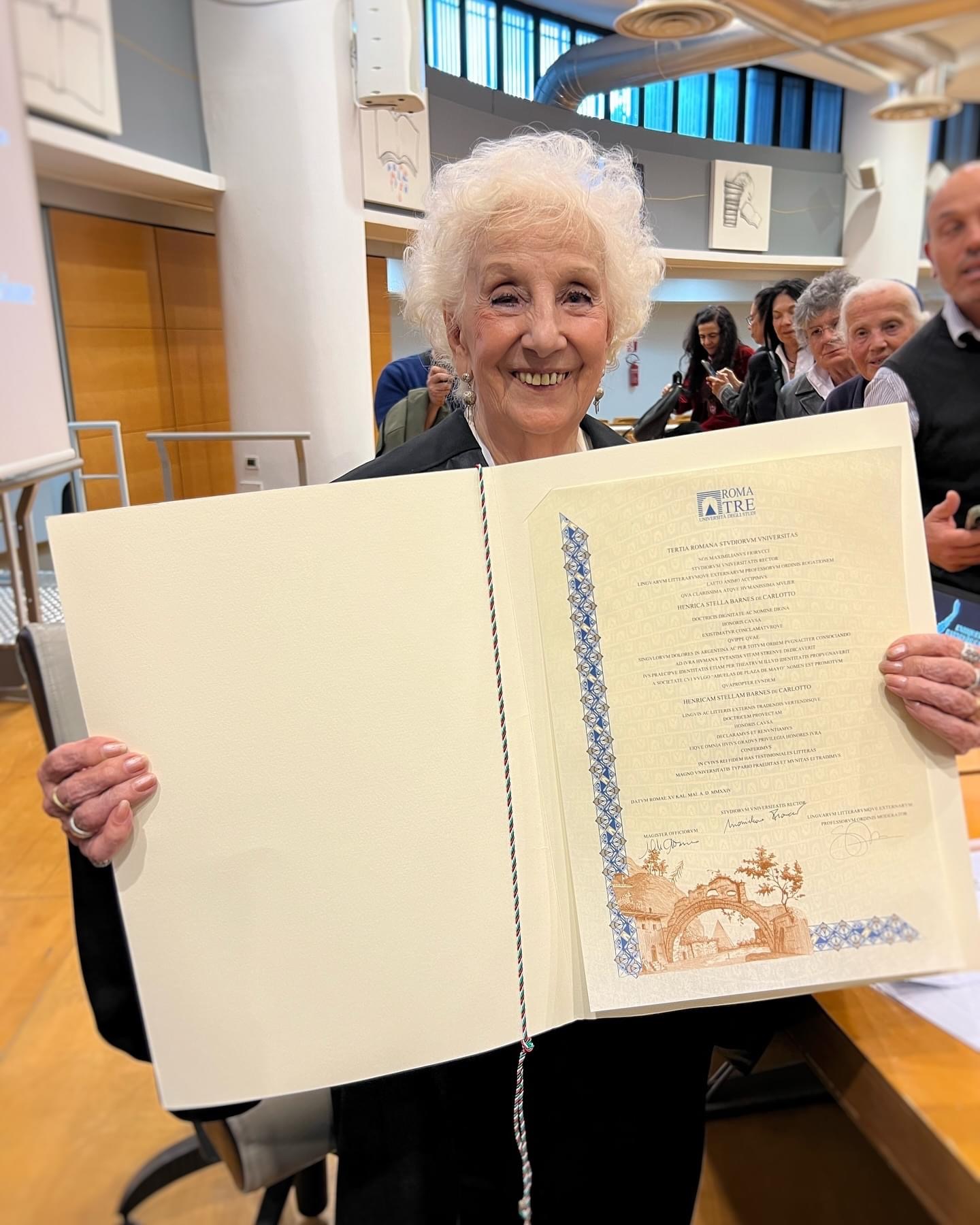 L’Università degli Studi Roma Tre ha conferito ieri a Estela de Carlotto, presidente dell’Associazione delle “Abuelas de Plaza de Mayo” – Le nonne di Piazza di Maggio, Laurea Honoris Causa.