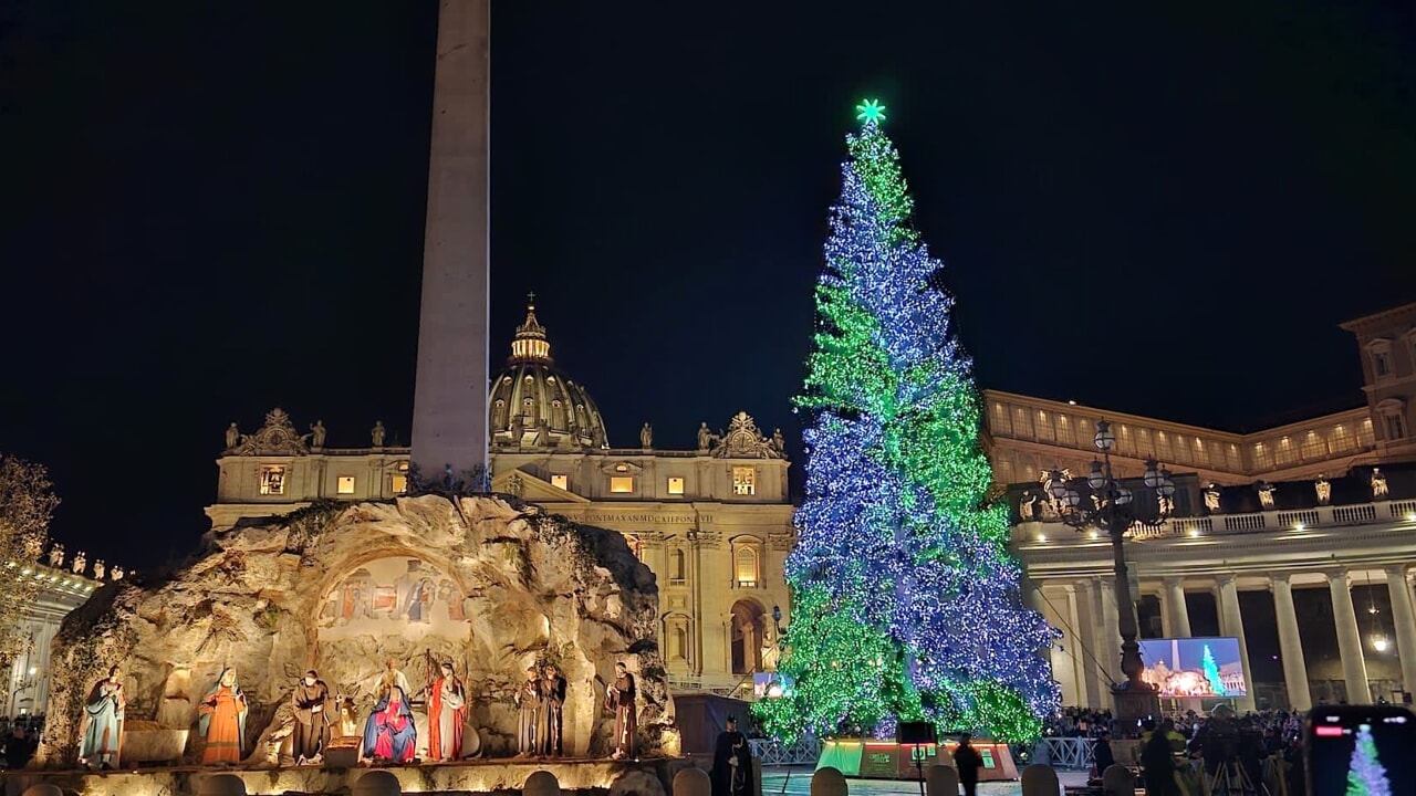 A Piazza San Pietro inaugurati l’albero di Natale e il presepe come simboli di pace e speranza